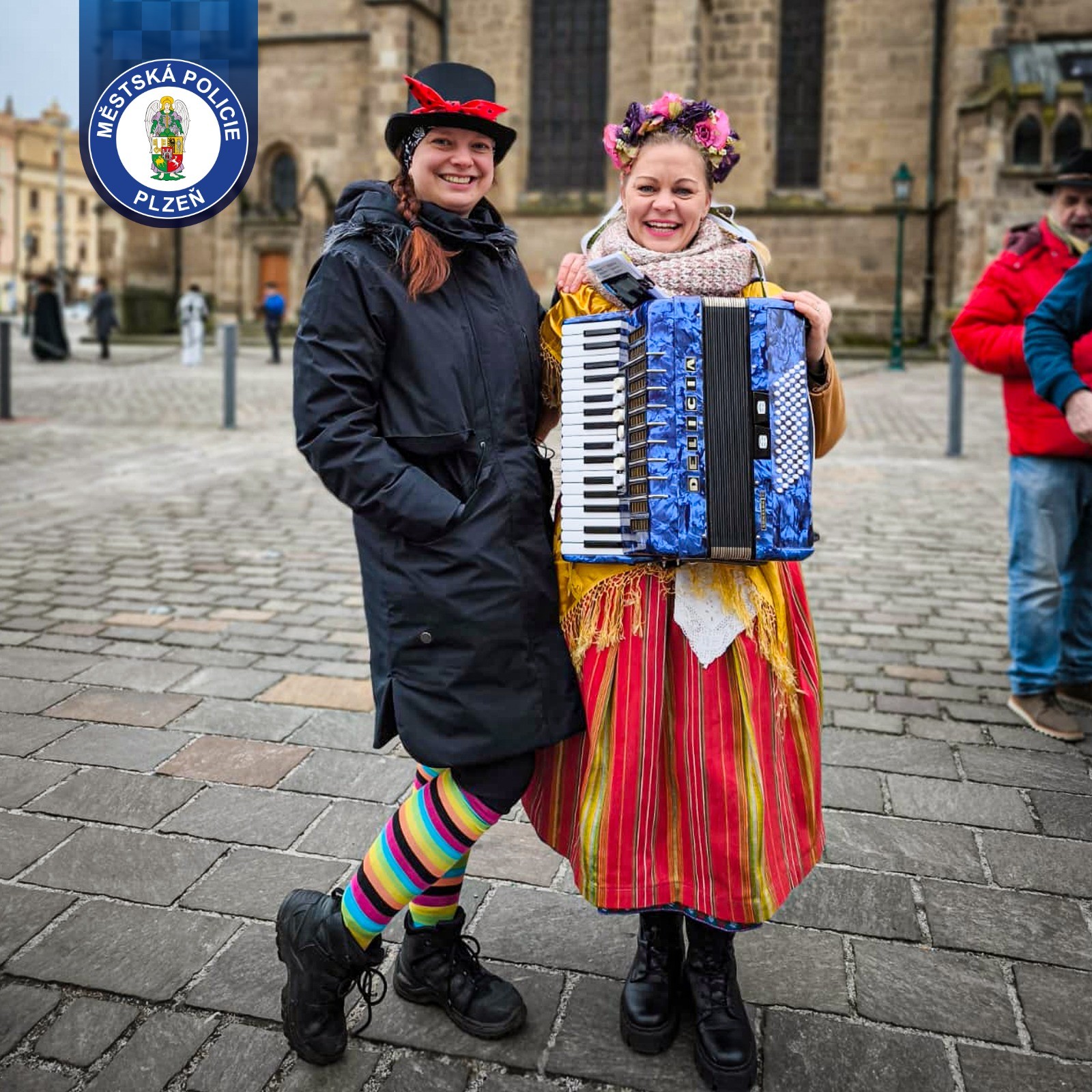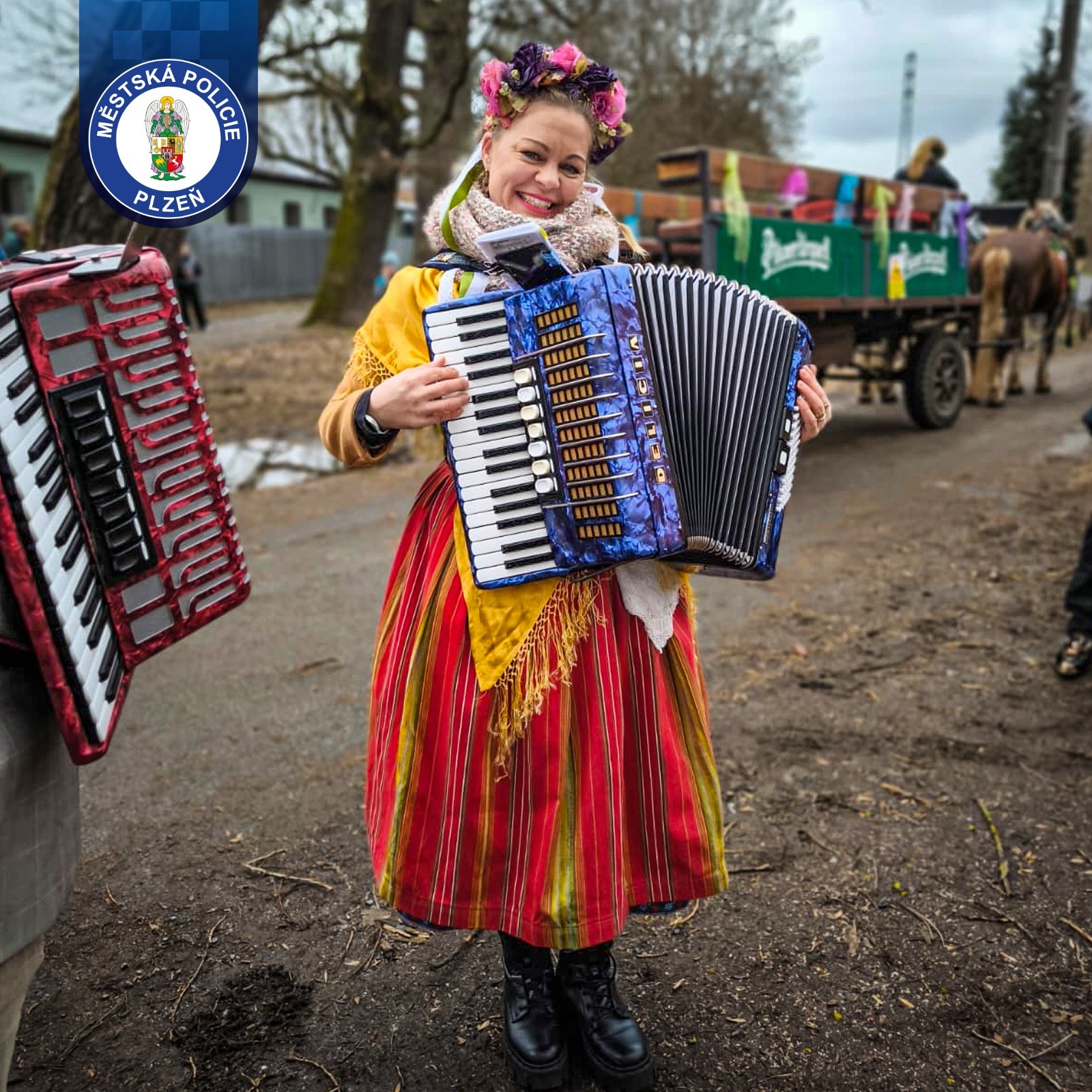 V neděli se v Plzni konala tradiční akce Vyhánění zimy, která přilákala do ulic velké množství lidí i přes nepřízeň počasí. Průvod masek vyrazil od Kalikovského mlýna, po mostě generála Pattona a okolo hlavní pošty na náměstí Republiky až před radnici. V samotném průvodu jsme měli i zastoupení z řad městské policie. Mimo službu se do programu zapojila naše preventistka, která po trase hrála na akordeon a pomáhala dotvářet atmosféru celé akce. Mezi maskami pak nechyběla jedna z našich městských policistek, která ale namísto uniformy oblékla tentokrát jiný oděv. Celá akce proběhla bez problémů a Plzeňané tak mohli symbolicky dát zimě najevo, že její čas je v Plzni u konce. Na bezpečný průběh celé akce po celou dobu dohlíželi strážníci, kteří průvod doprovázeli po celé trase, usměrňovali dopravu a dbali na bezpečnost účastníků i kolemjdoucích.
