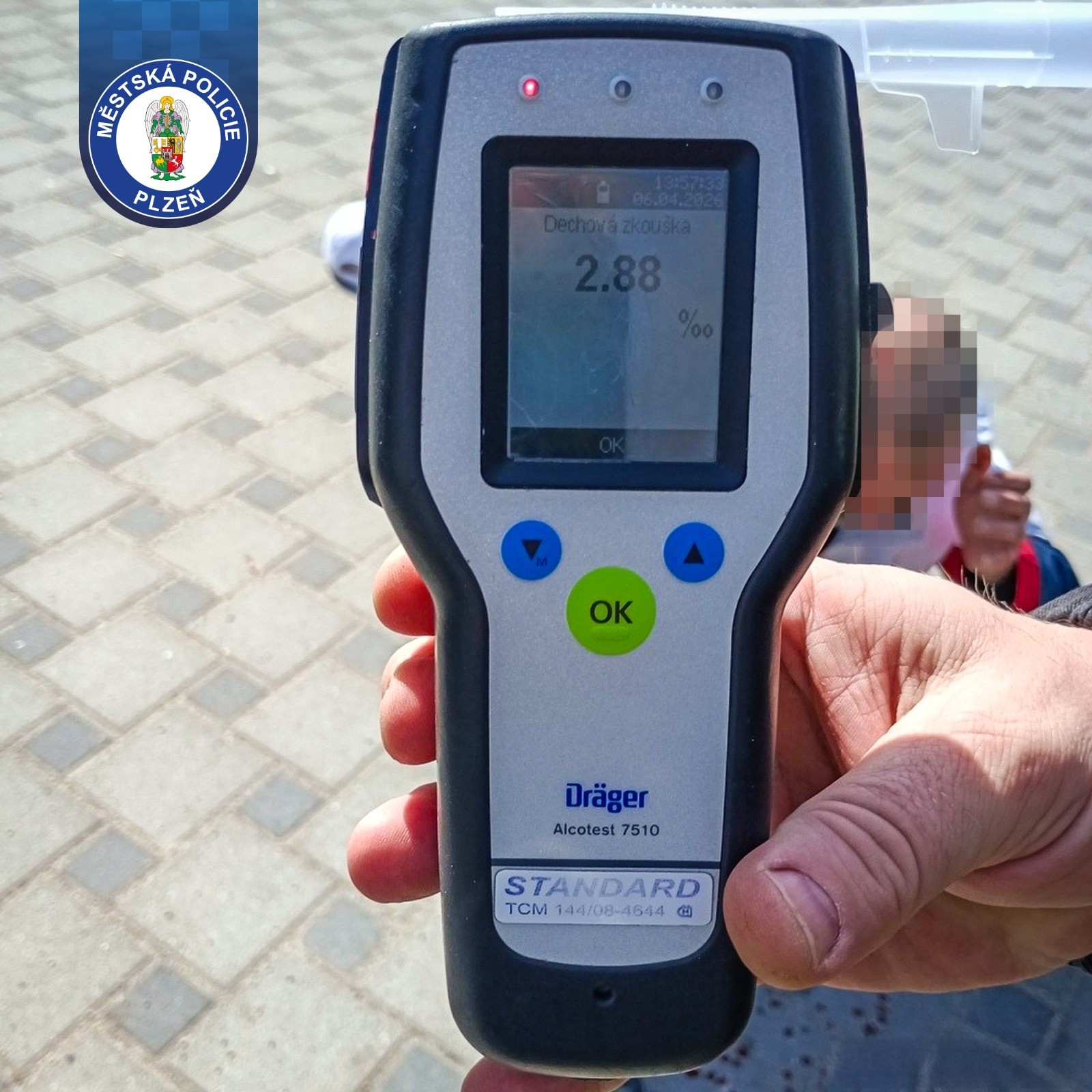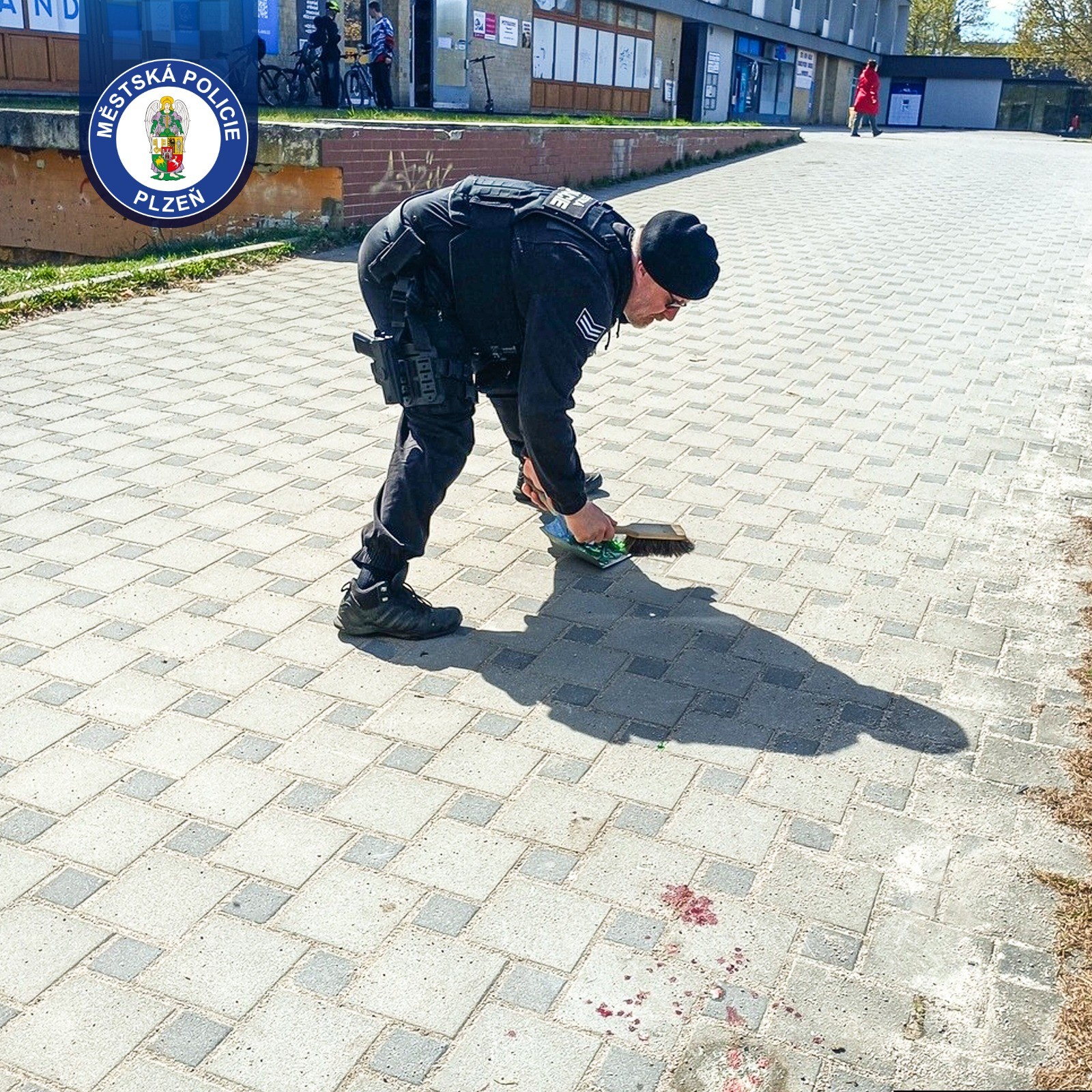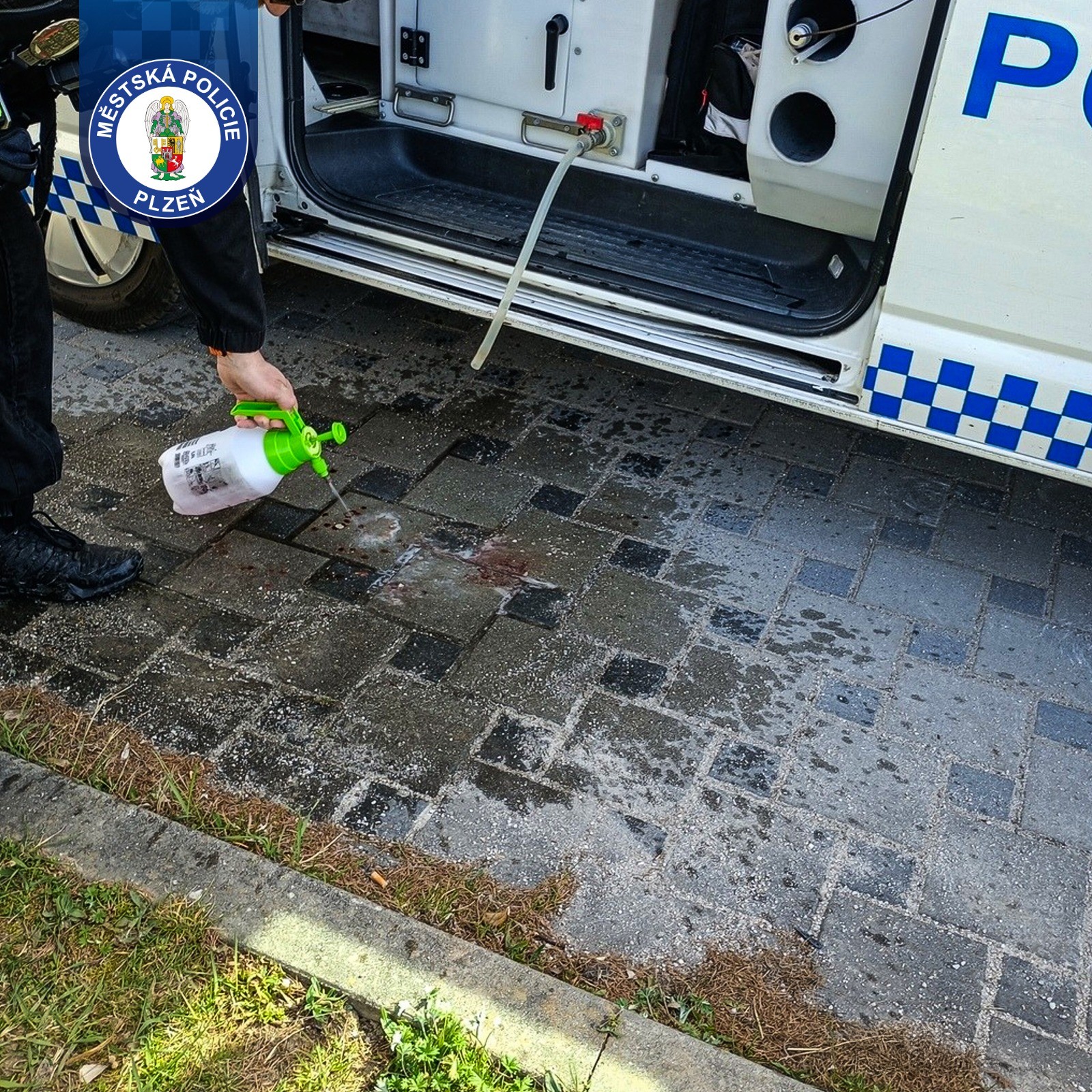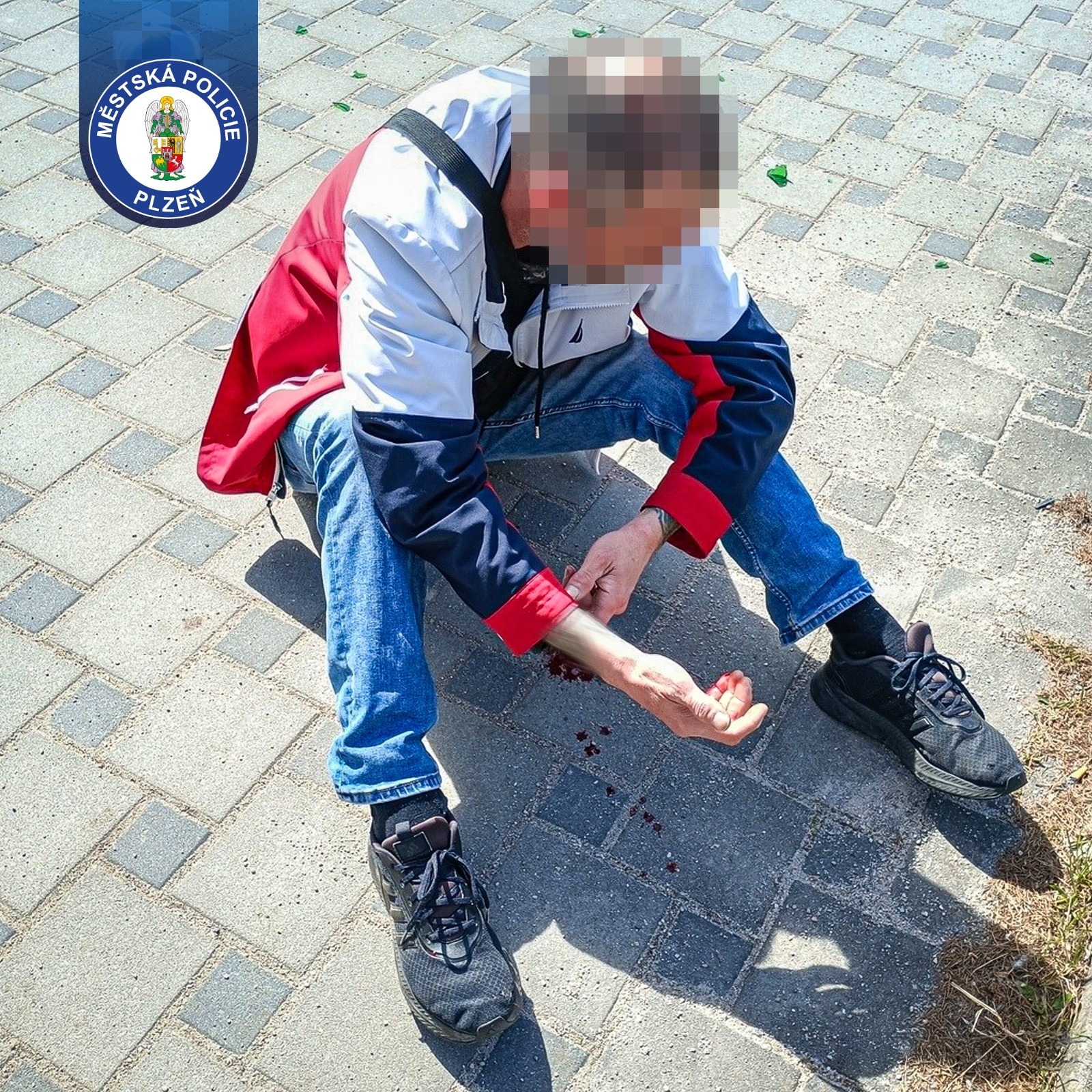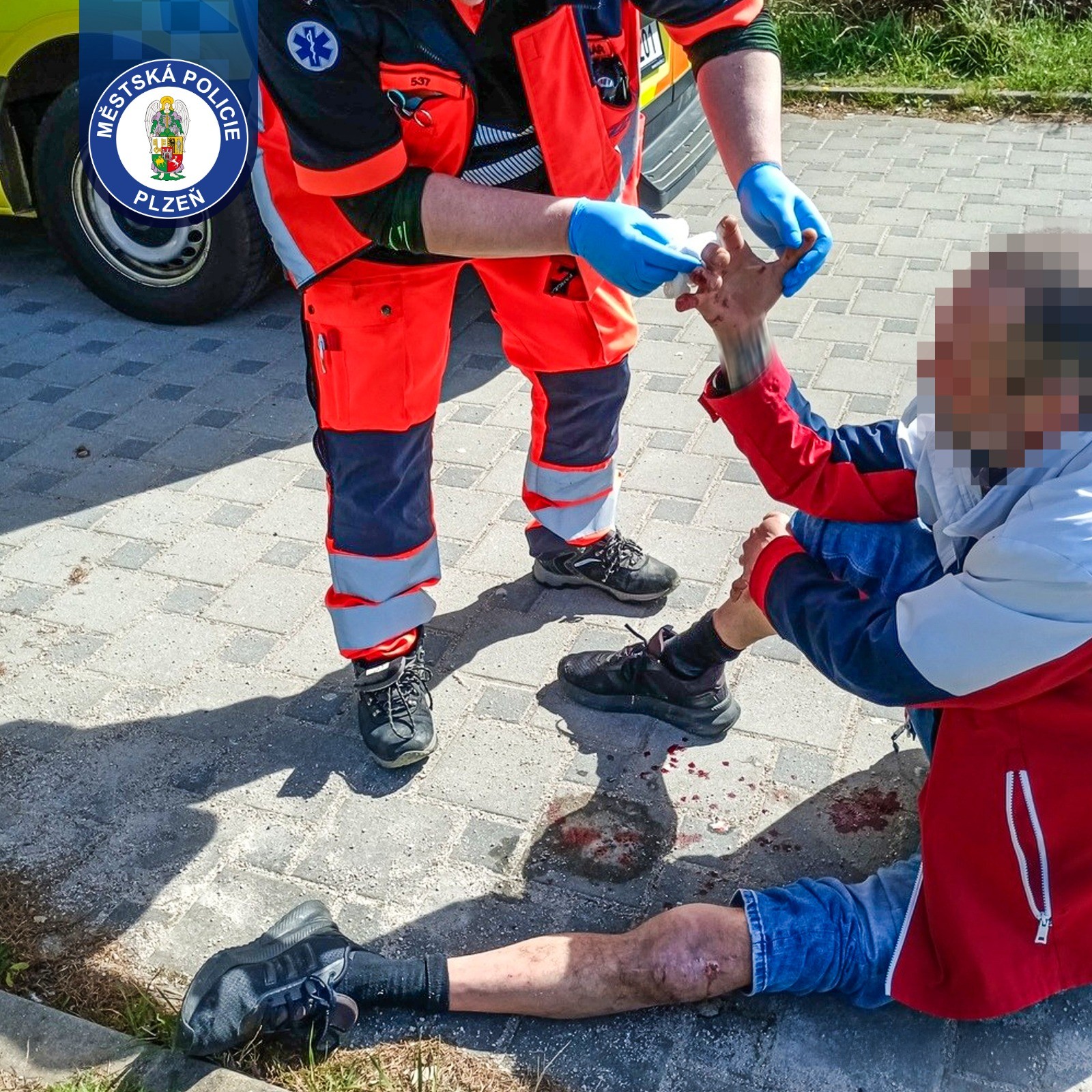 Hlídku Městské policie Plzeň během kontrolní činnosti oslovil projíždějící cyklista s tím, že nedaleko leží v ulici Karla Steinera na chodníku muž, který se nemůže zvednout a nevypadá vůbec dobře. Strážníci byli na místě během chvíle. Za obchodním centrem u prodejny Albert nalezli 49letého muže sedícího na chodníku, v jehož okolí ležela rozbitá skleněná lahev. Z ruky mu přitom odkapávala krev. Muž uvedl, že uklouzl na písku a pravděpodobně si při pádu o střepy rozřízl ruku. Stěžoval si také na bolest hlavy. Už při prvním pohledu bylo zřejmé, že zranění není málo – měl podlitinu na obličeji, otok nad okem, krvácení z nosu a řadu oděrek na rukou. Nejvážnější bylo poranění ruky, ze kterého krvácel. Strážníci proto přivolali zdravotnickou záchrannou službu a pustili se do ošetření. Rány vydezinfikovali a pomocí zdravotnického vybavení zastavili krvácení a ošetřili viditelná poranění. Z muže byl cítit alkohol a dechová zkouška ukázala 2,88 promile. Přesto byl při vědomí, komunikoval a stěžoval si hlavně na bolest hlavy a rukou. Situace se ale během několika minut změnila. Muž začal těžce dýchat, přestával reagovat a upadal do bezvědomí. Strážníci ho proto okamžitě uložili do bezpečné polohy a znovu kontaktovali linku 155 s informací o zhoršení jeho stavu. Muže se jim dařilo udržet při vědomí až do příjezdu záchranářů, kteří si dotyčného převzali do své péče a transportovali ho do nemocnice k dalšímu ošetření.